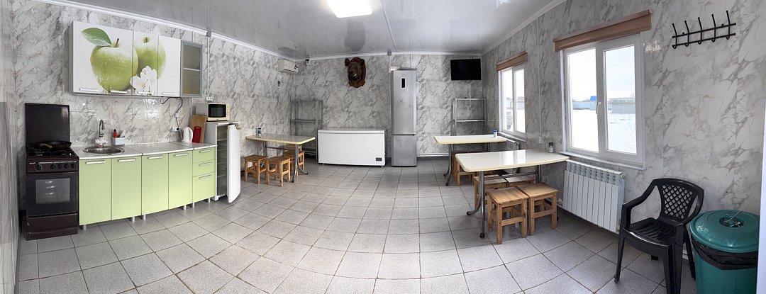 На территории базы есть автостоянка, а также морозильные камеры, мангалы, казан и коптильня. Для гостей доступны две большие кухни, оснащенные микроволновой печью, газовой плитой, чайником и всей необходимой посудой для приготовления вкусных блюд.