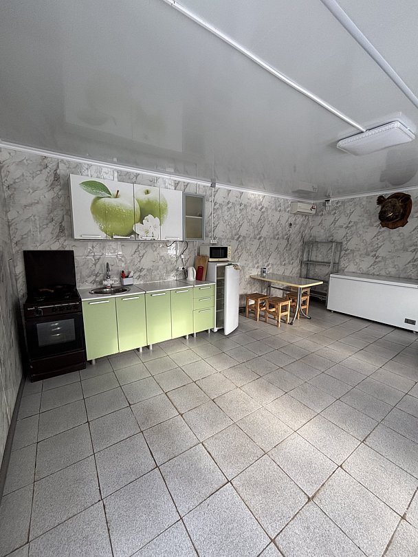 Площадь 22 кв. м. Отдельный вход с улицы. Зона отдыха, автостоянка, холодильники, морозильная камера, а также мангалы, казан и коптильня.