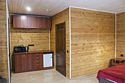Уютный коттедж с индивидуальной системой отопления и сауной, оборудован небольшой террасой. Коттедж построен из экологически чистого материала, хорошо отапливается, есть горячее водоснабжение. В доме есть ванная комната с душем, сауной и бесплатными туалетно-косметическими принадлежностями. Площадь 42 м2, рассчитан на комфортное размещение до 3 человек. Коттедж оборудован: - двуспальной кроватью-трансформером (при желании их можно превратить в две односпальные кровати); - креслом-кроватью; - журнальным столиком; - комодом; - миникухней (включает холодильник, чайник, микроволновую печь, посуду, настенные шкафчики); - ванной комнатой (включает душевую кабину, санузел, раковину, фен, полотенца); - сауной с принадлежностями; - открытой террасой со столиком и стульями. Рядом с коттеджем находится мангальная зона, где есть мангал и стол со скамейками.Услуги и удобства