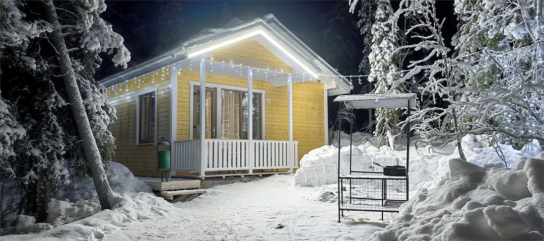 Уютный коттедж с индивидуальной системой отопления, оборудован небольшой террасой. Коттедж построен из экологически чистого материала, хорошо отапливается, есть горячее водоснабжение. В доме есть ванная комната с душем и бесплатными туалетно-косметическими принадлежностями. Площадь 36 м2, рассчитан на комфортное размещение до 4 человек. Коттедж оборудован: - двуспальной кроватью-трансформером (при желании их можно превратить в две односпальные кровати); - двумя односпальными креслами-кроватями; - журнальным столиком; - комодом; - миникухней (включает холодильник, чайник, микроволновую печь, посуду, настенные шкафчики); - ванной комнатой (включает душевую кабину, санузел, раковину, фен, полотенца); - открытой террасой со столиком и стульями. Рядом с коттеджем находится мангальная зона, где есть мангал и стол со скамейками.Услуги и удобства