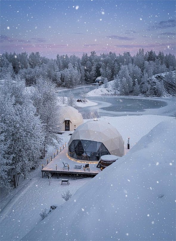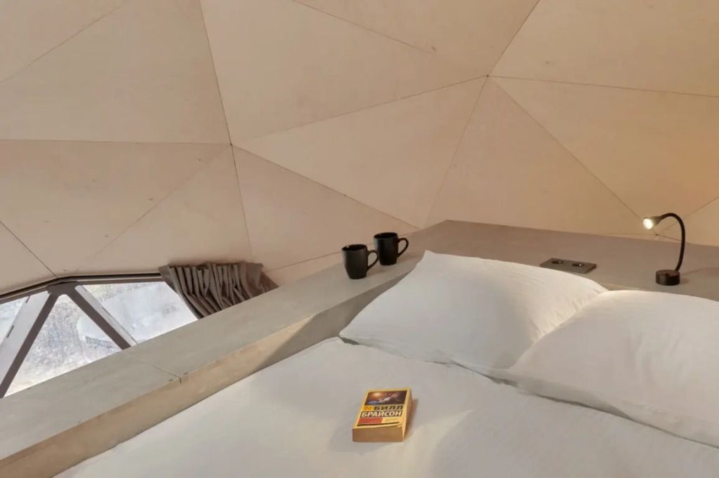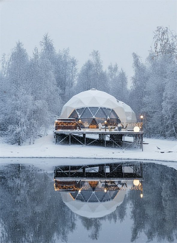 Дом сферической формы с подогреваемой купелью на террасе.Услуги и удобства