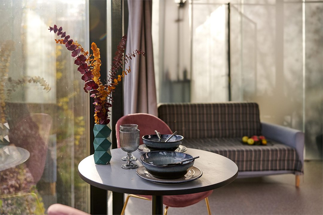кондиционер, фен, душевая кабина, водонагреватель, халаты, тапочки, терраса, двуспальная кровать, стулья, вешалки, зеркало, чайник, раковина, отдельный вход в номер, стол, туалетные средства, туалет, мини-холодильник, бутилированная вода, мыло, затемняющая штора, окна от пола до потолка, нераскладной диван, можно с питомцамиВ гостиничном номере