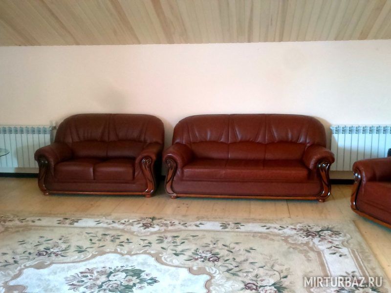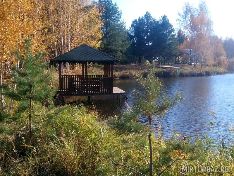На территории комплекса есть русская баня на дровах, комната отдыха, просторный бассейн и чистое озеро.