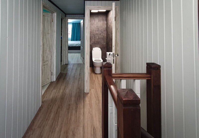 На втором этаже находятся две спальни, два санузла и ванная комната. Все санузлы и ванные оснащены полами с подогревом. Быстрый WI-FI 100-200МБ на всей территории.