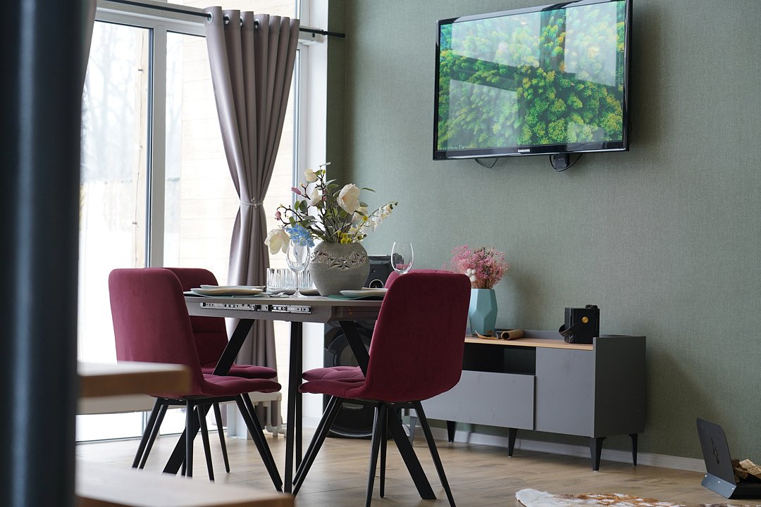 В каждом доме вас ждут уютные спальни, полностью оборудованная кухня, ванная комната, а также развлечения: караоке-система, музыкальная колонка, настольные игры и игровая приставка.