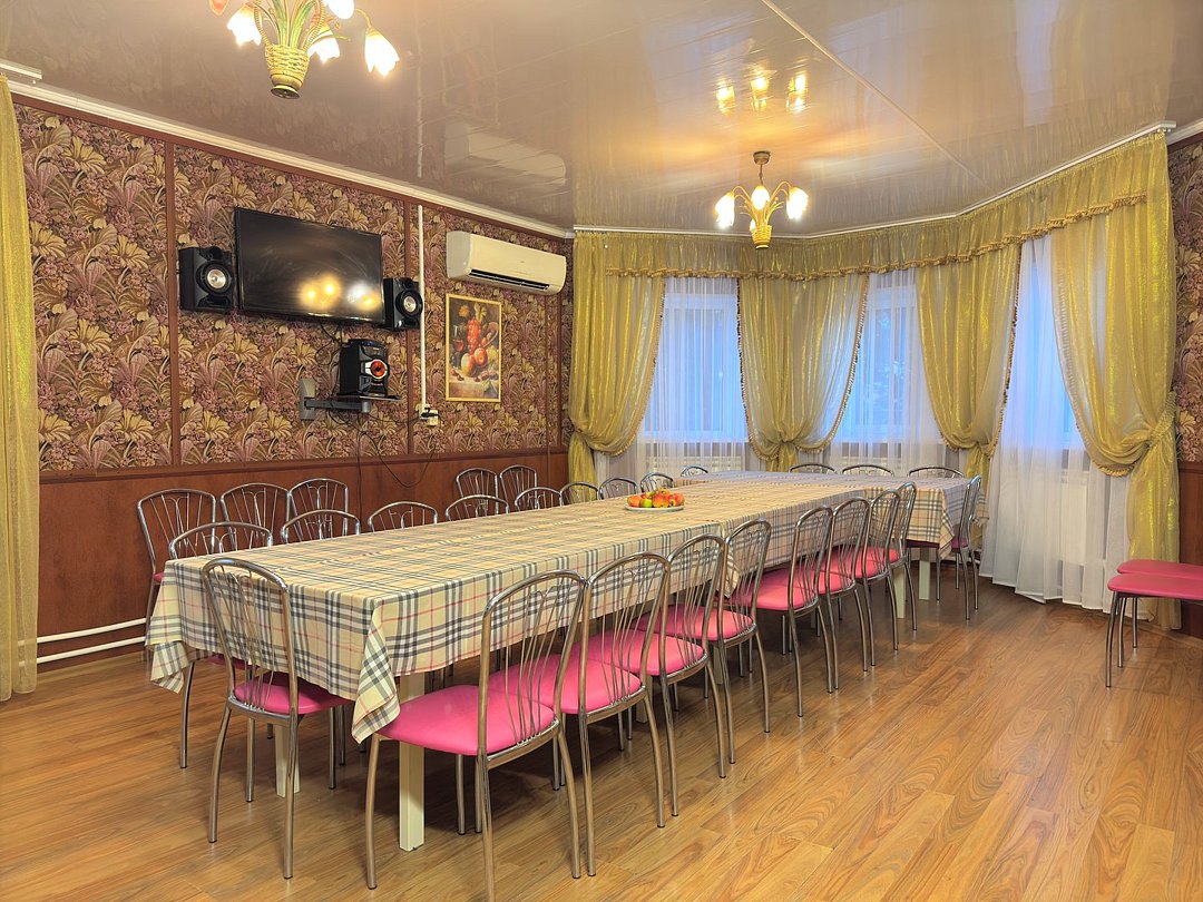 - Банкетный зал: Просторный зал площадью 60 м², рассчитанный на 30 гостей, идеально подходит для праздников и корпоративных мероприятий.