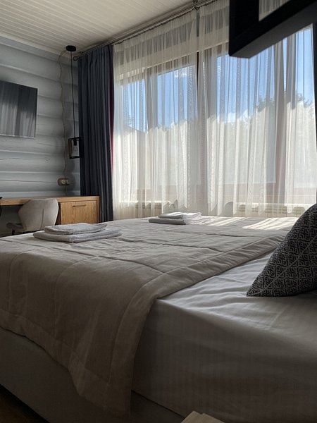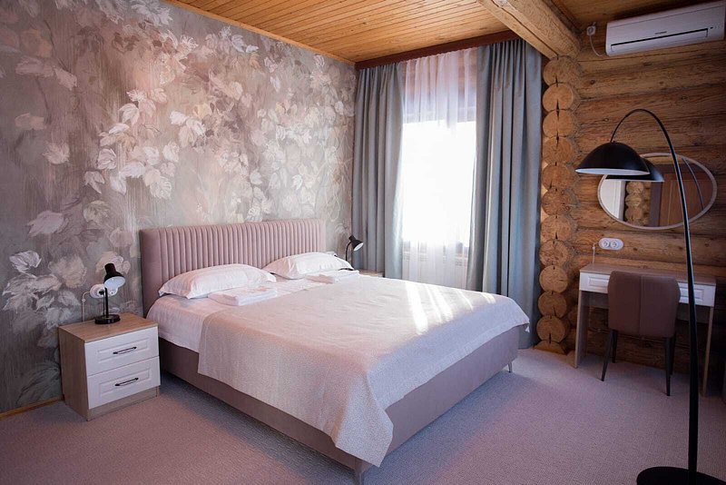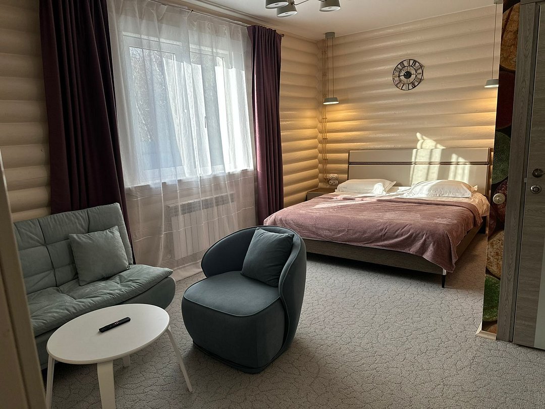 Просторный номер с собственным бассейном и дровяной баней. Здесь можно насладиться изысканным интерьером, спокойствием и уютом. Этот номер особенно ценят гости, которые любят париться и водные процедуры.