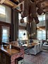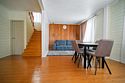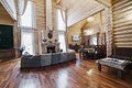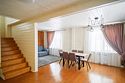 Первый этаж оборудован диваном, обеденным столом на 6-10 человек и мягкими стульями.