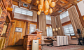 Просторный срубовый дом расположен в окружении деревьев рядом с осетровым озером. Берите удочки и отправляйтесь на рыбалку! Идеальная локация для отдыха большой семьей или веселой компанией в отдалении от других домов.
