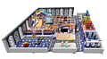 - для детей от 3 до 5 лет — с сухим бассейном, пластиковыми мячами, тремя невысокими горками, интерактивной панелью для стрелялок;