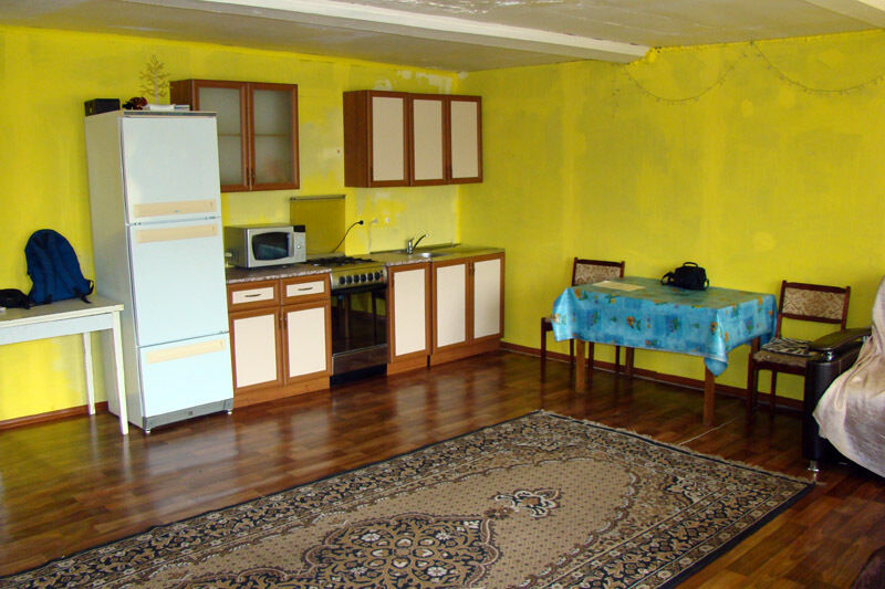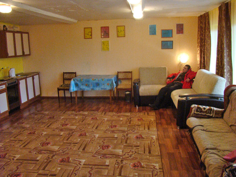 Гостевой дом расположен в пригороде Заволжска, в экологически чистом месте. Вместимость двухэтажного дома – 10 человек. К гостиной зале примыкает кухня дома, которая располагает всем необходимым для самостоятельного приготовления пищи. Так же здесь можно заказать русские блины, рыбу, шашлык и даже растопленный самовар!