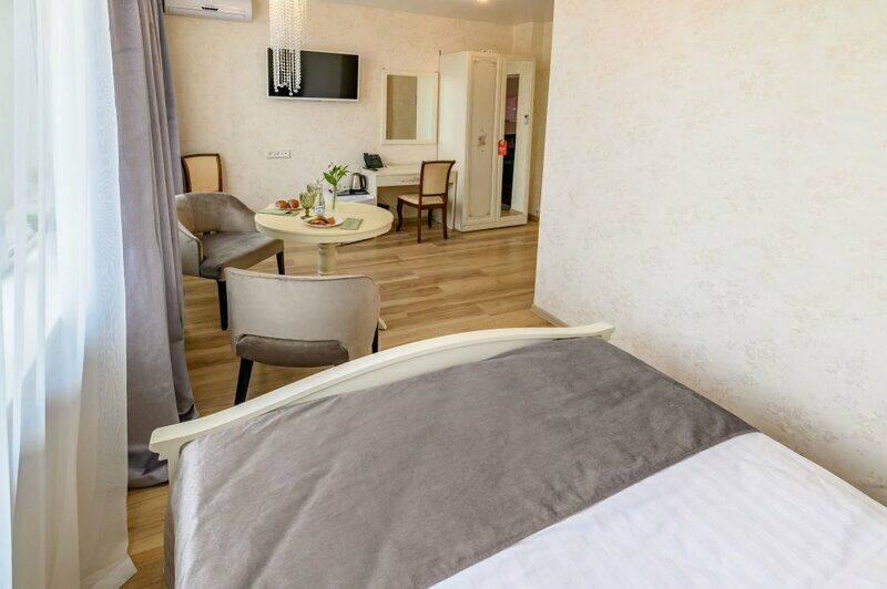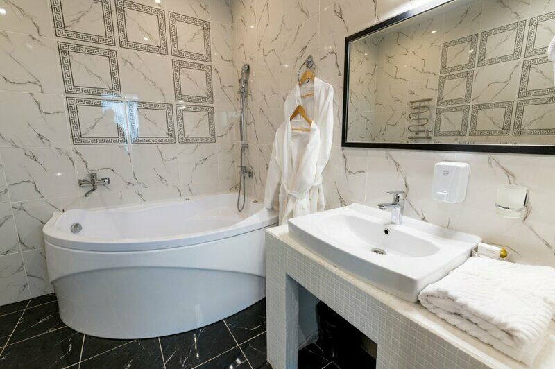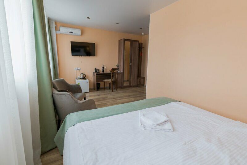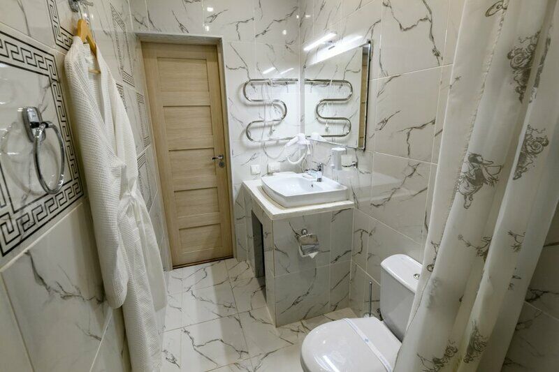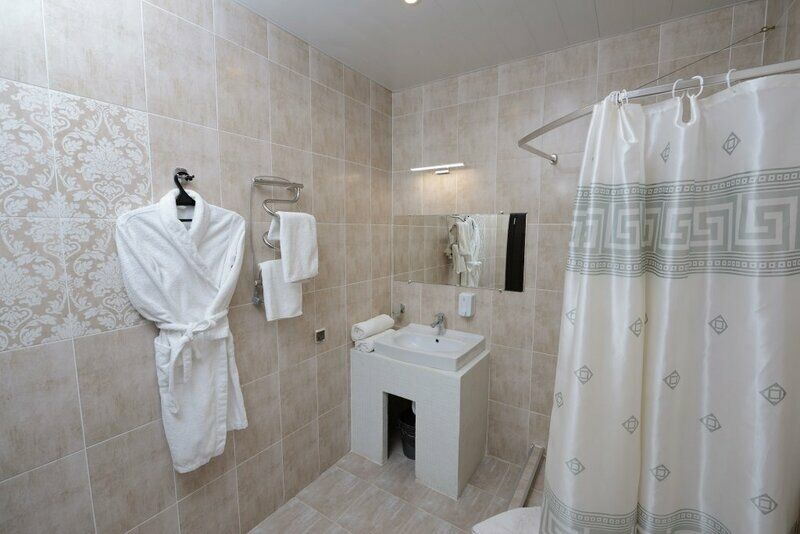 В номере гостей ждут душ, телевизор и халат. Оснащение зависит от выбранной категории номера.