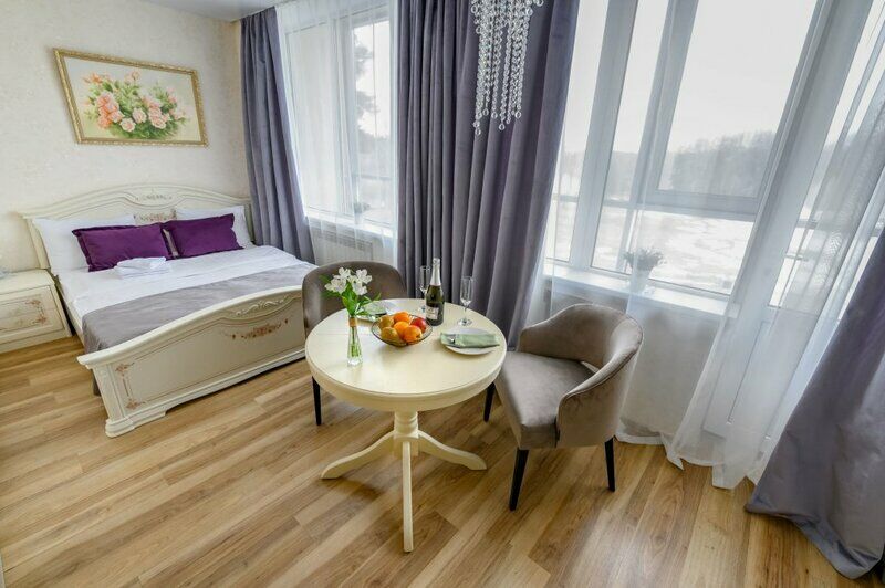 Место живописное - берег реки Луга, практически лес. Но это одновременно и минус - отель, можно сказать, на отшибе. Хотя город-то не сильно большой, всё в пешей доступности.