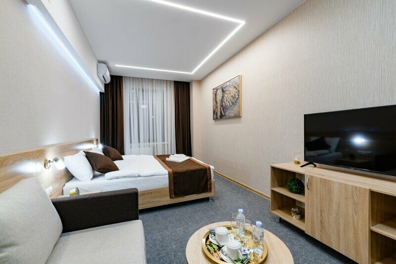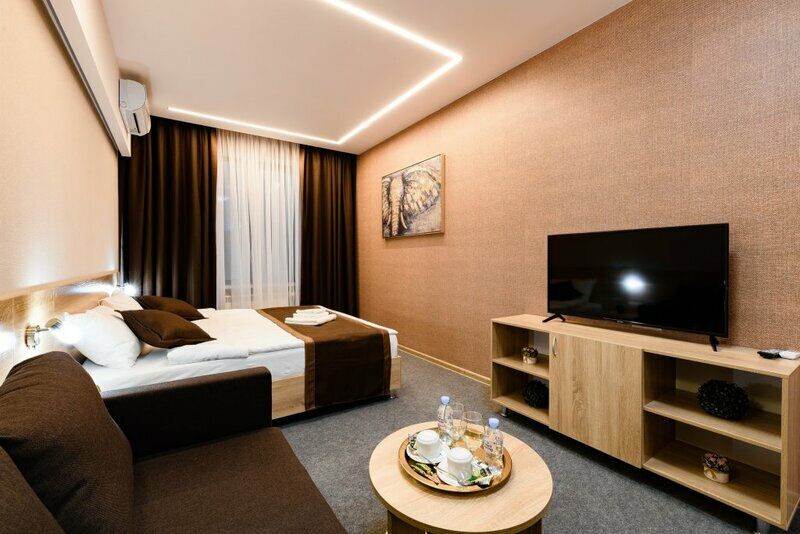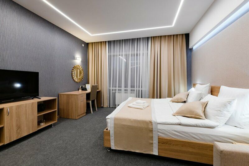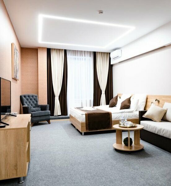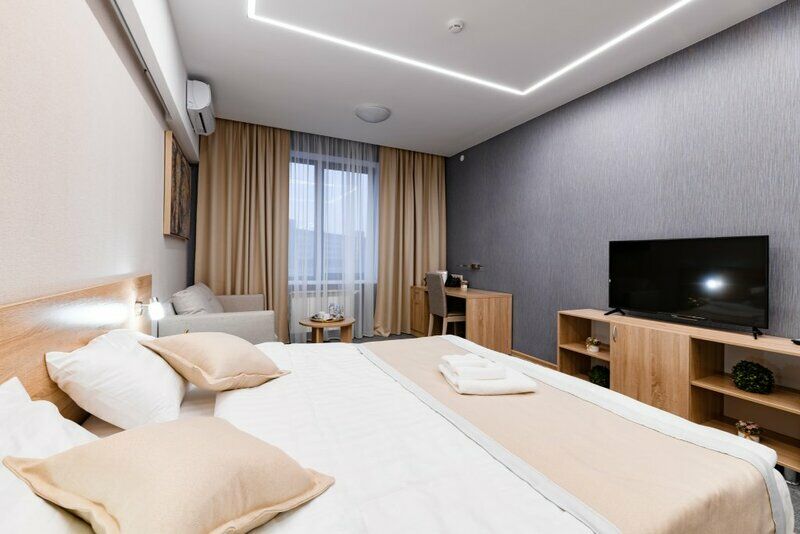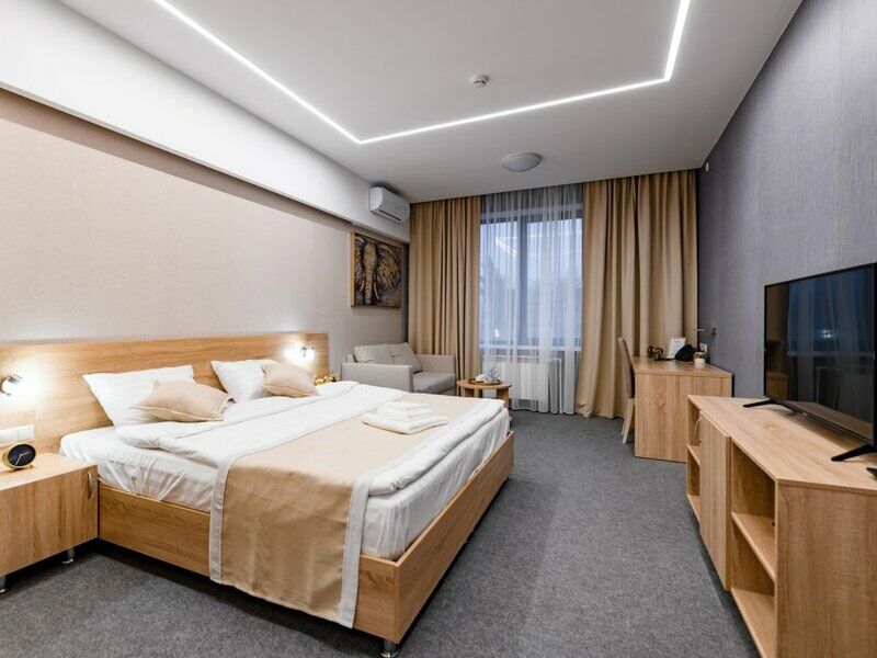 Чтобы вы могли отдохнуть после долгого дня, в номере есть телевизор и халат. Оснащение зависит от выбранной категории номера.
