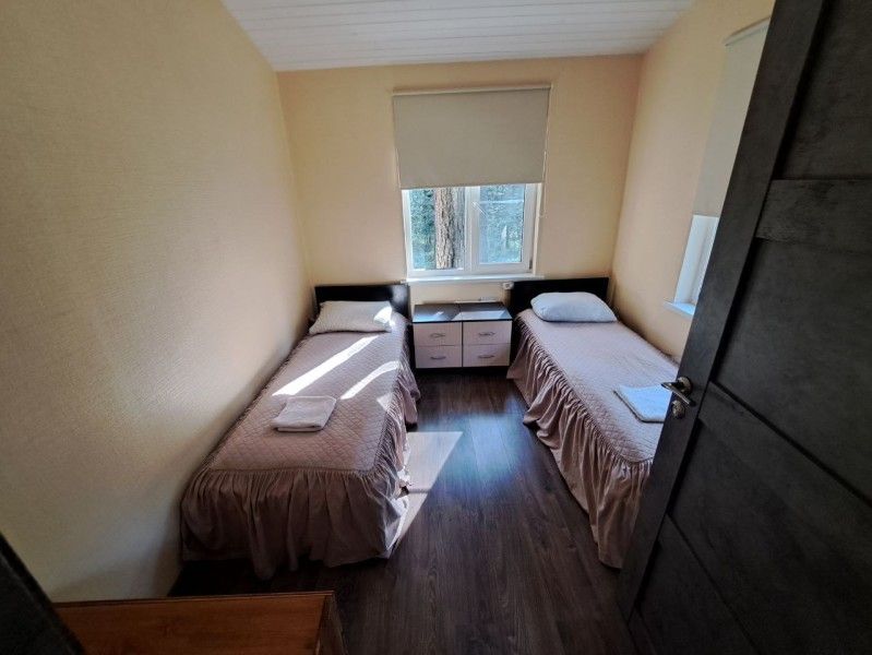 В коттедже могут уютно разместиться от 4 до 6 человек (2 изолированные спальни).