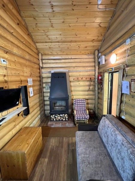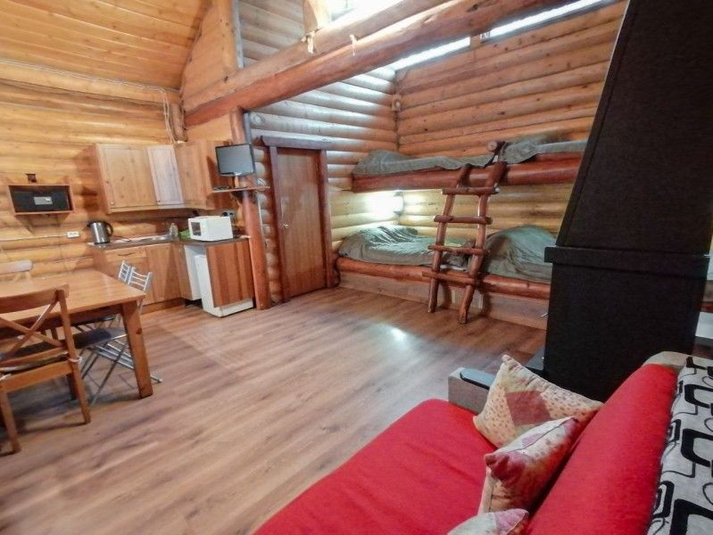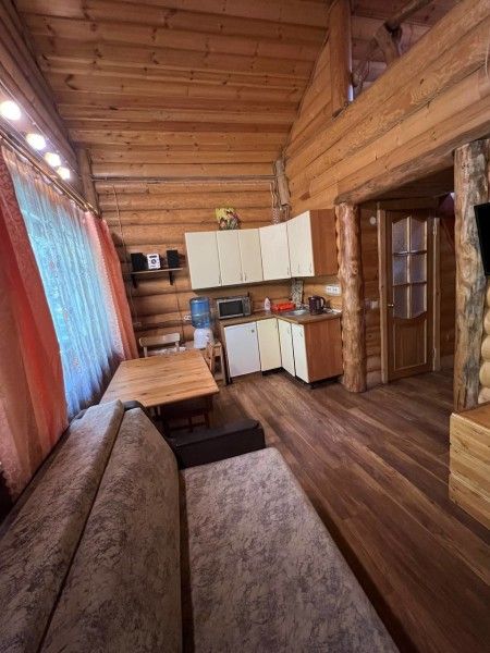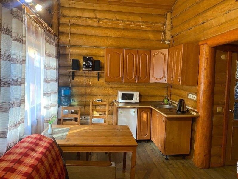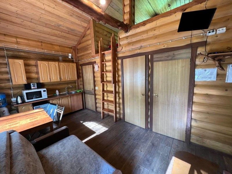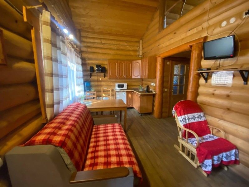 1 этаж: кухня (электрический чайник, посуда на 6 персон+ шампура, кулер с питьевой водой, мини-холодильник, микроволновая печь), гостиная (музыкальный центр, камин, ТВ, ДВД, кресло-кровать, кресло-качалка), санузел (душевая кабина, унитаз, фен), спальня (две односпальных кровати из массива сосны).