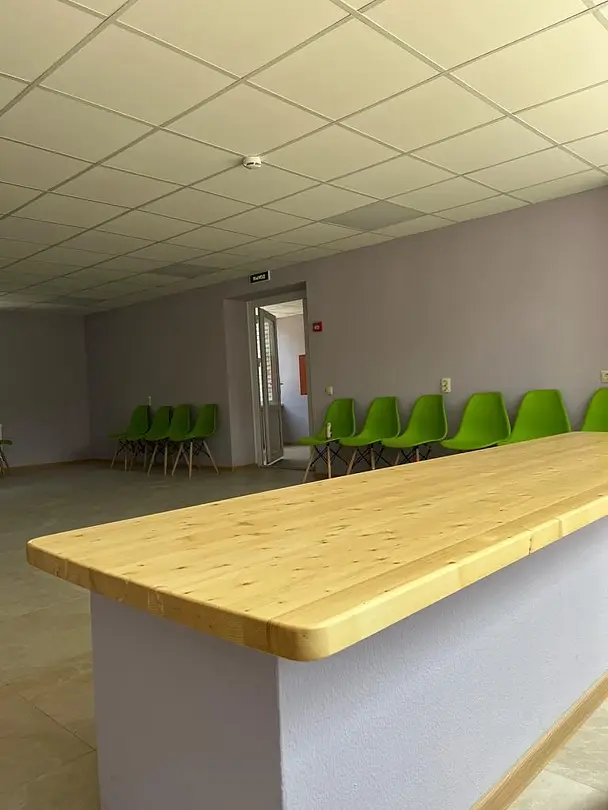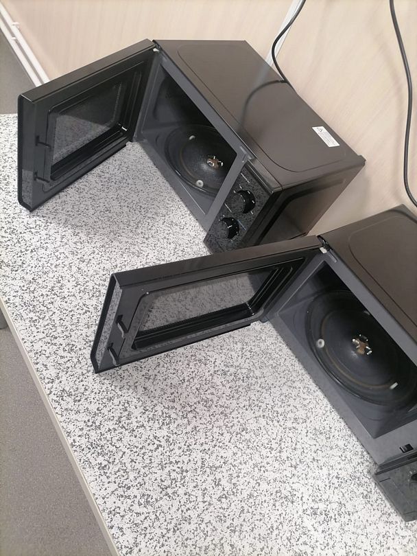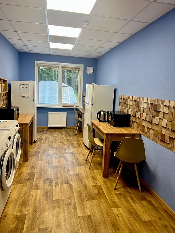 Есть отдельная кухня с холодильником и микроволновкой, где можно разогреть пищу и поесть. Отдельная комната со стиральной машиной.
