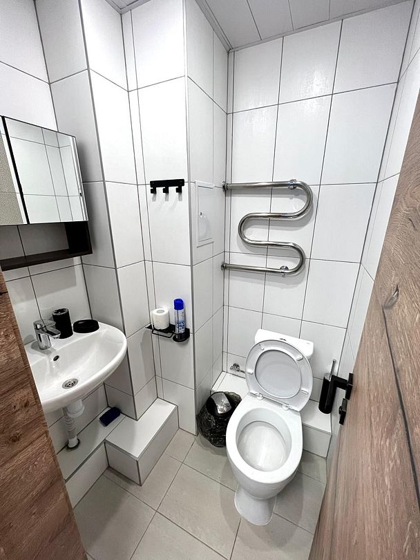 Однокомнатный номер с прихожей, санузлом и туалетом. Подходит для проживания двух-трех гостей.