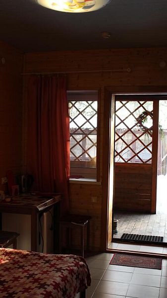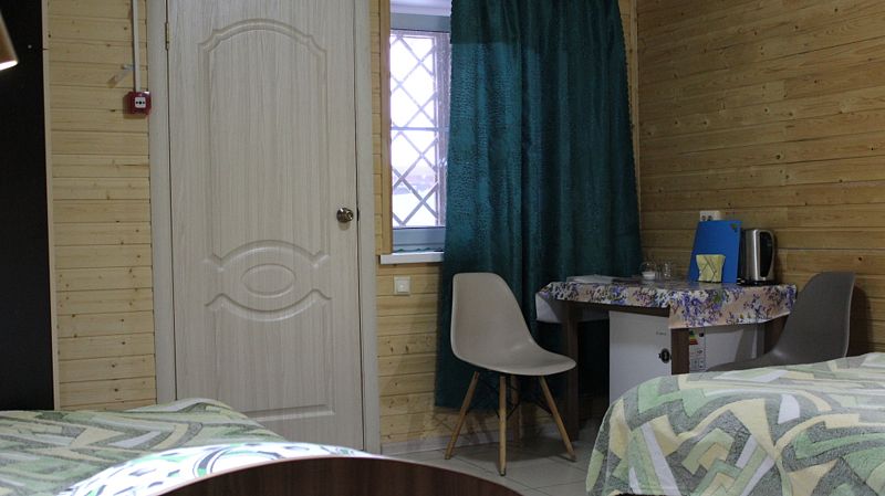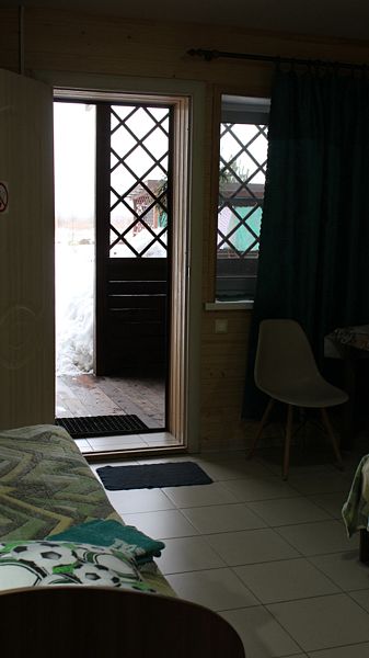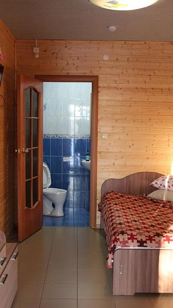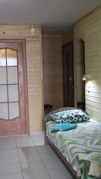 В номере площадью 13 кв.м одна двуспальная кровать, полноценный санузел с душем и горячей водой, телевизор, холодильник, электрочайник. Во всем номере подогреваемые полы. Выход из номера на террасу (кроме номера 1). Рядом с террасой есть крытый мангал. Есть возможность поставить в номере дополнительно раскладушку или детскую кроватку ( 500 ₽/ сутки).