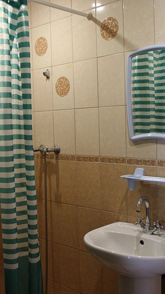 В номере есть санузел с душем и раковиной. Полы везде подогреваемые. Выход из апартаментов на террасу, где можно расположиться за столиком. Рядом со входом удобный большой мангал под навесом.