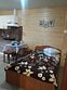 В первом помещении - зона кухни и большой раскладной диван. Во втором помещении - одна двуспальная кровать и две односпальных кровати.