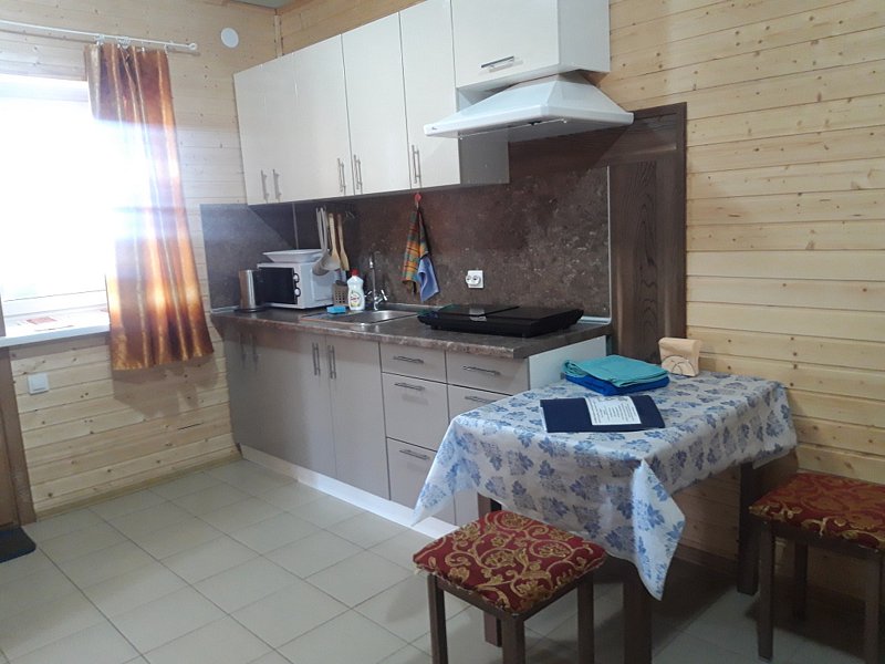 На кухне есть все необходимое для приготовления пищи (микроволновка, индукционная плита, большой холодильник с морозильной камерой, посуда, раковина). В номере есть санузел с душем и раковиной. Полы везде подогреваемые. Выход из апартаментов на террасу, где можно расположиться за столом. Рядом со входом удобный большой мангал под навесом.