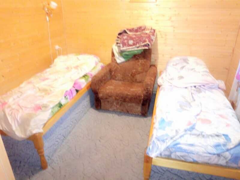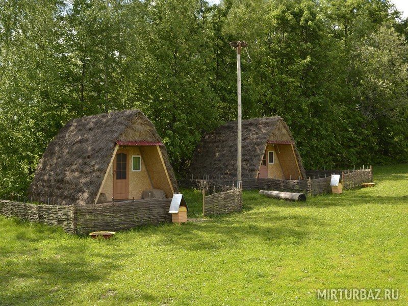 Внутри спальные места (кровати с сенными матрасами, постельные принадлежности), стол, телевизор, освещение, розетка. Туалет и душ расположены рядом с домиками.