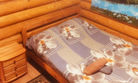 На втором этаже находятся 2 спальные комнаты с двух- и односпальными кроватями. Из одной из них мы попадаем на балкон с прекрасным видом на лес и Егорьевское озеро. Насладиться рождением солнца, наблюдая восход светила над озером, или игрой солнечных лучей на кронах деревьев и озерной глади при закате, вы сможете сидя за столиком на балконе во время утреннего чаепития или вечернего коктейля.