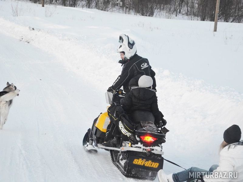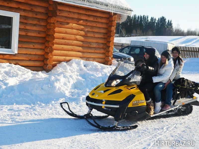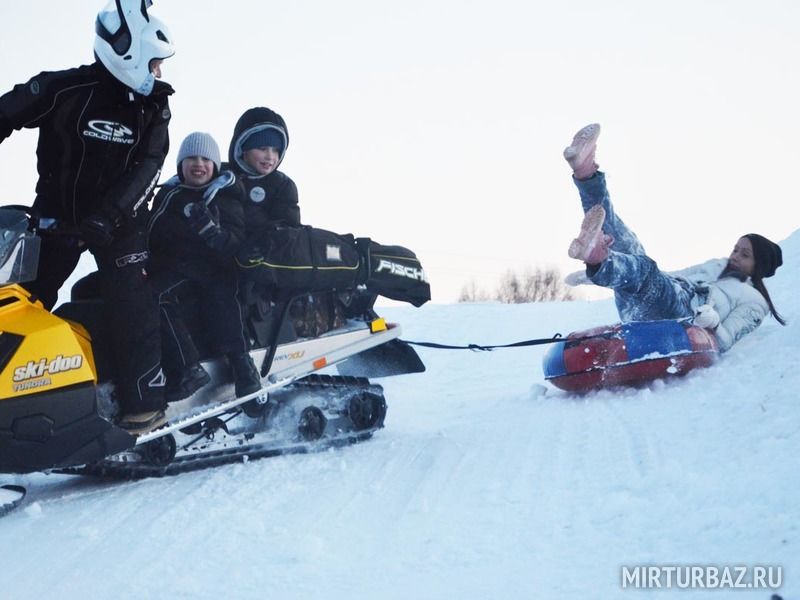 В зимнее время база отдыха располагает снегоходами и также предоставляет в аренду. Вы можете прокатиться как на самом снегоходе так и на ватрушке привязанному к снегоходу.