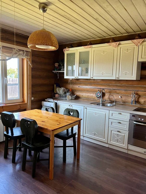 Кухня с бытовой техникой Bosh и с печью «Русская экономка», для тех, кто любит готовить на углях. Для детей предоставляется детский столик для кормления, игрушки и детская кровать.
