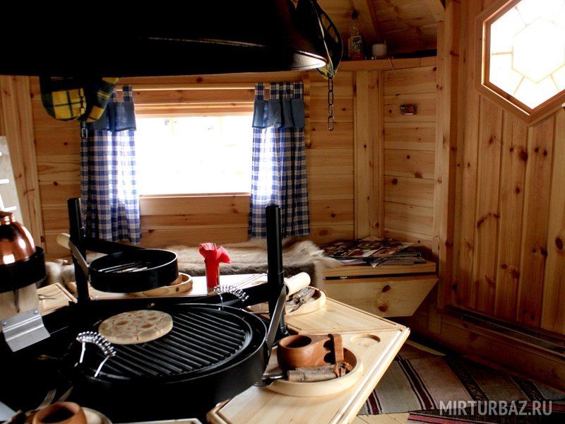 Вместимость 6-8 человек с лапландскими аксессуарами: оленьими шкурами, можжевеловой посудой, сковородой гриль и др. Стоимость аренды от 800 р. в зависимости от численности компании.