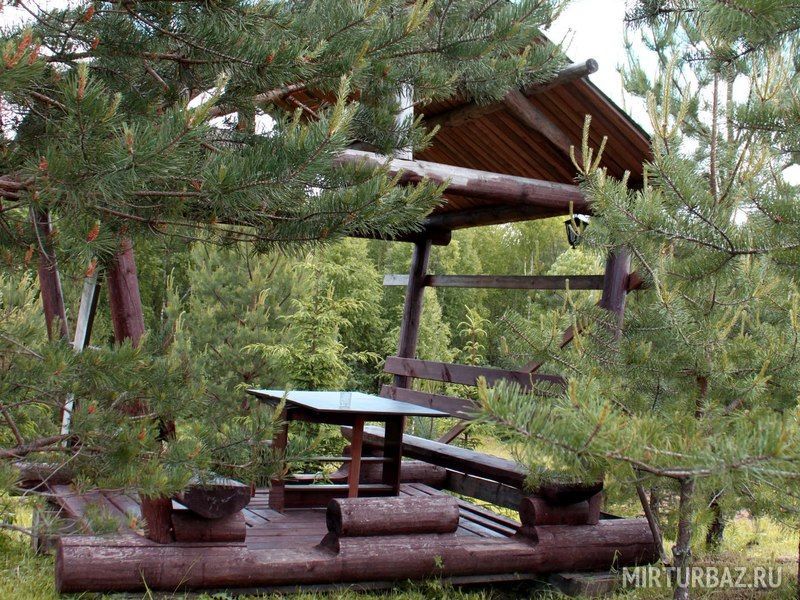 Летняя рубленая открытая беседка с мангалом рассчитана на компанию до 10 человек. Расположена в уютном лесном уголке участка. Предоставляется мангал, шампуры, решётки для мяса.