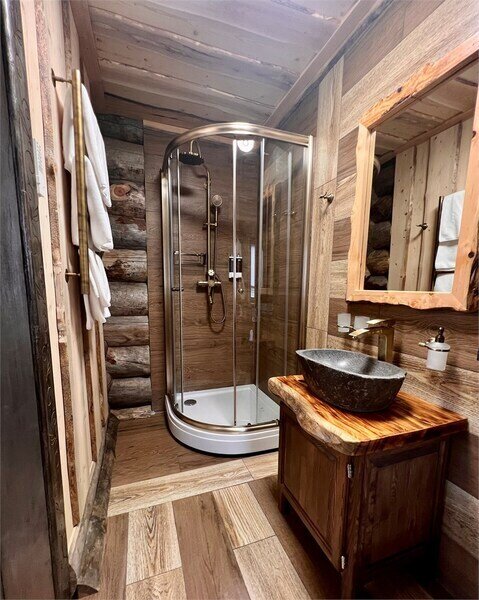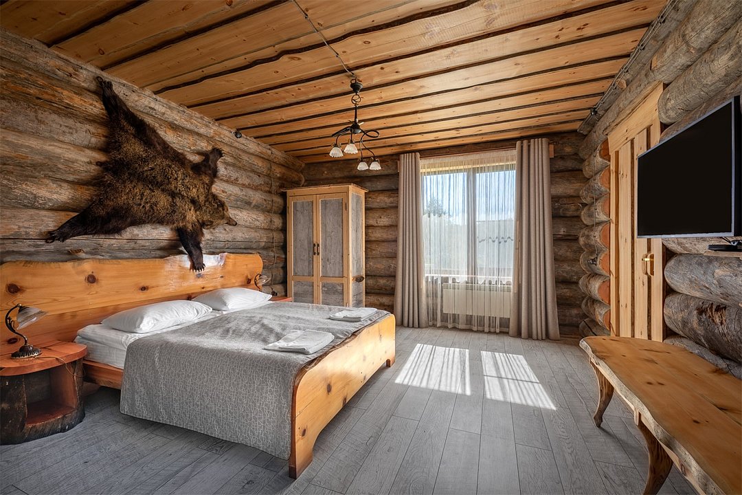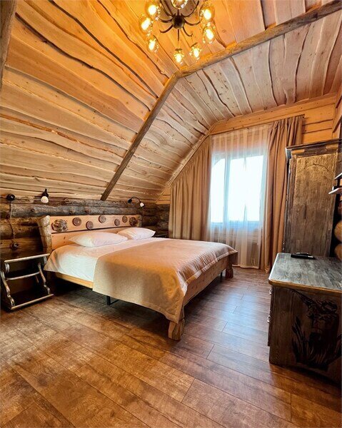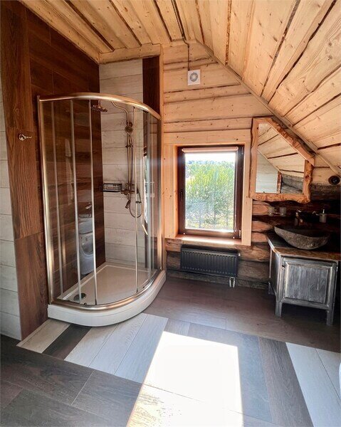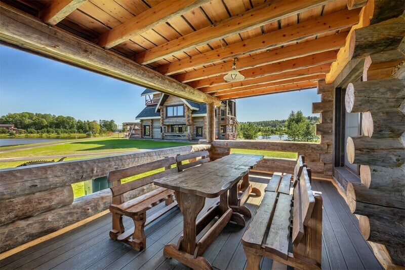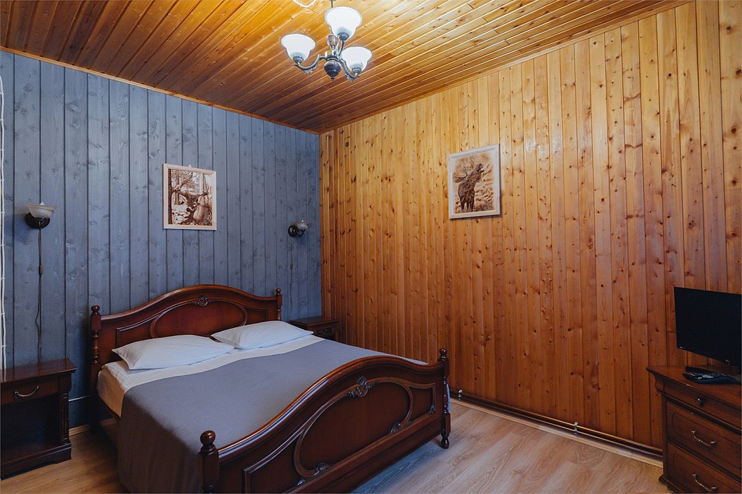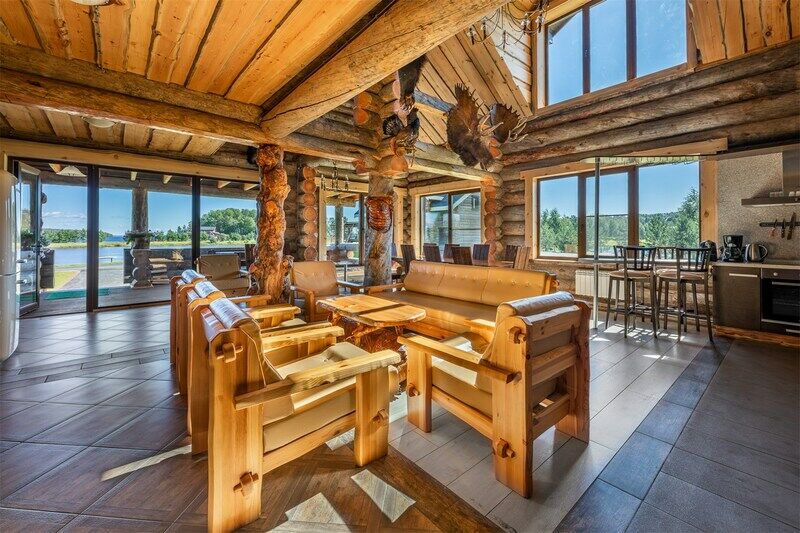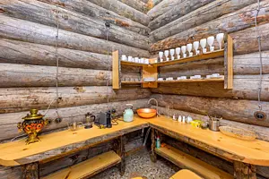 Русская баня на дровах на берегу озера; состоит из двух отделений (вместимость до 8 гостей каждое).