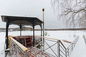 В банном отделении: гостиная; телевизор; душевая; мини-бар (платно); холодная купель; русская парная на дровах; терраса; выход к озеру.