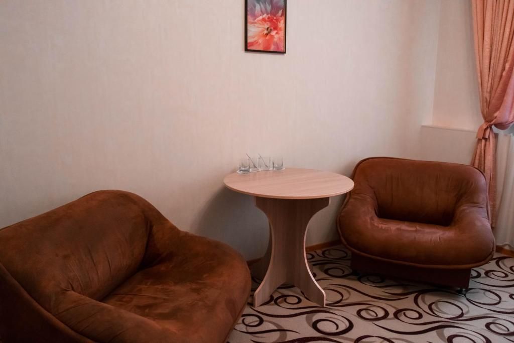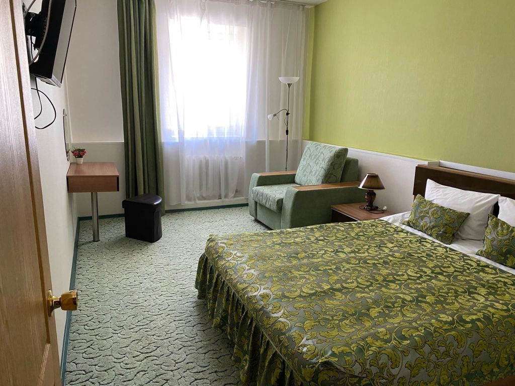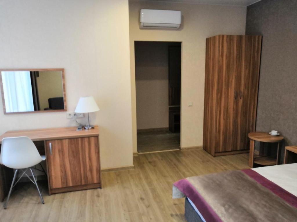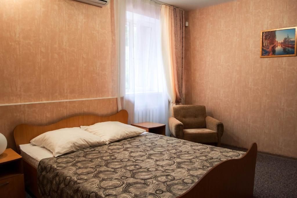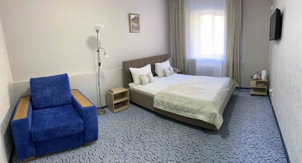 Трехэтажное здание гостиницы находится на пересечении улицы Молодой Гвардии и Стального переулка. Гостей ожидают номера разной категории — от Стандартного одноместного номера до апартаментов с джакузи. Номера хорошо меблированы, на кроватях — ортопедические матрацы, в комнатах есть телевизор, мини-холодильник, кондиционер, фен, подключена сеть wi-fi. В некоторых номерах имеются балконы.