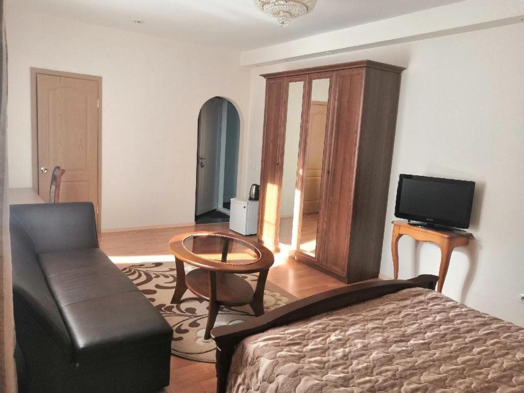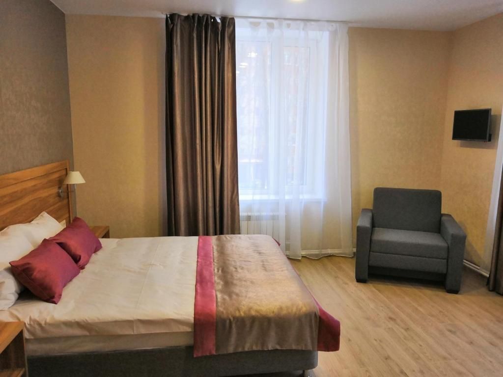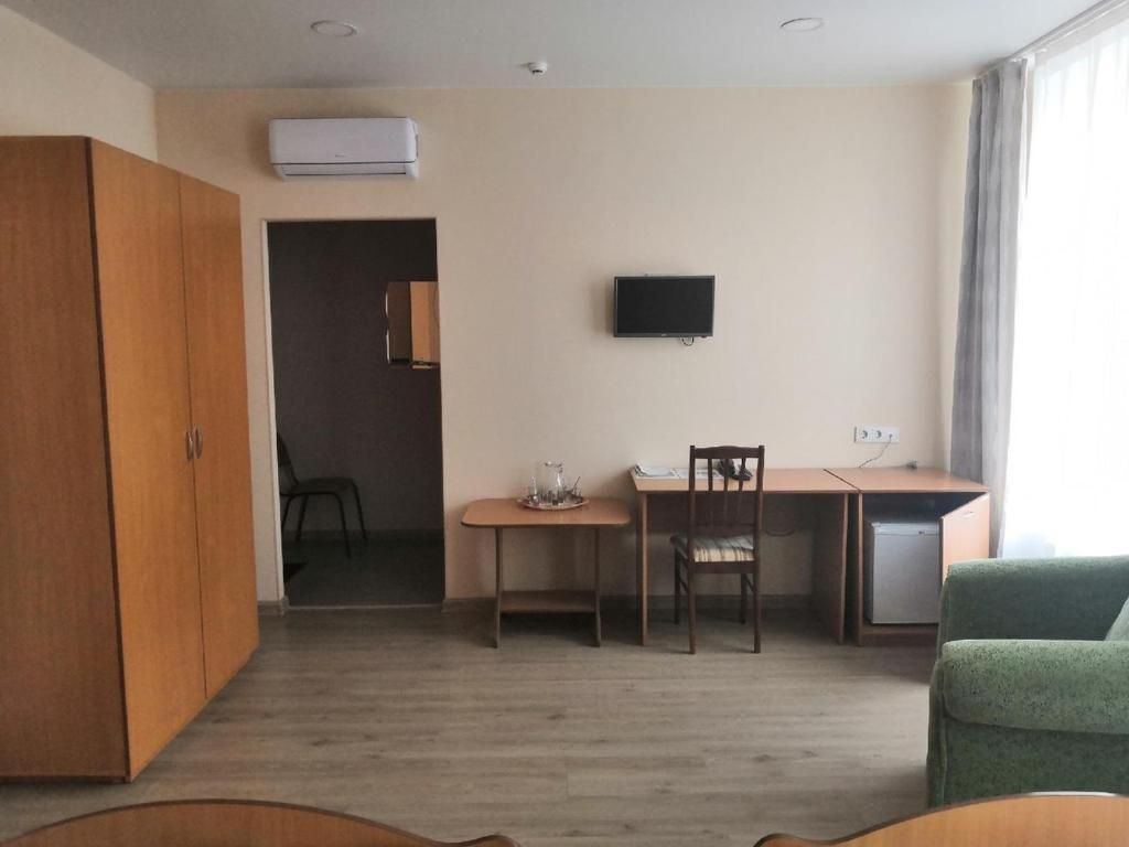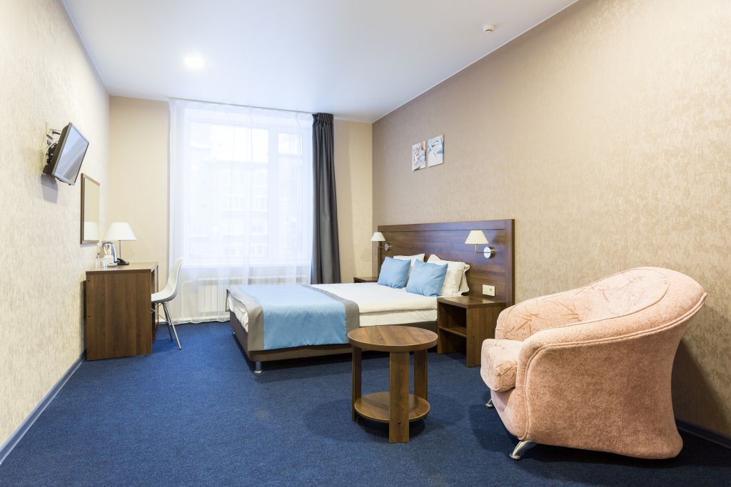 Трехэтажное здание гостиницы находится на пересечении улицы Молодой Гвардии и Стального переулка. Гостей ожидают номера разной категории — от Стандартного одноместного номера до апартаментов с джакузи. Номера хорошо меблированы, на кроватях — ортопедические матрацы, в комнатах есть телевизор, мини-холодильник, кондиционер, фен, подключена сеть wi-fi. В некоторых номерах имеются балконы.