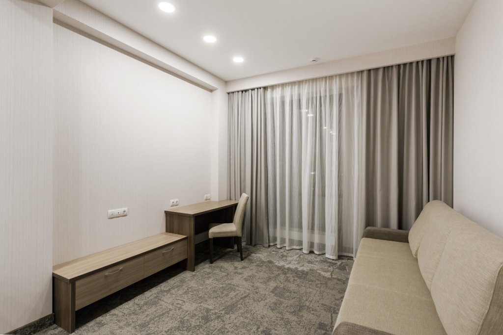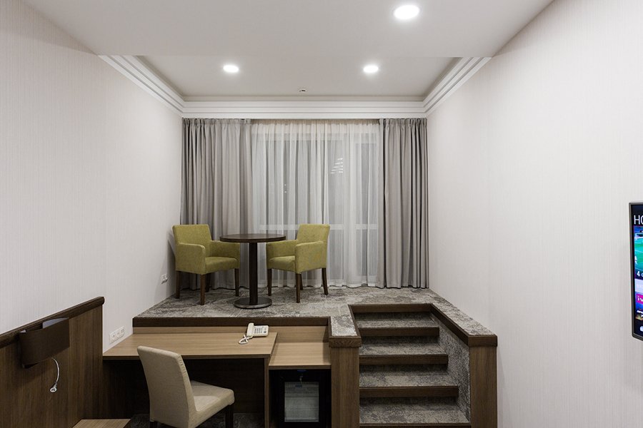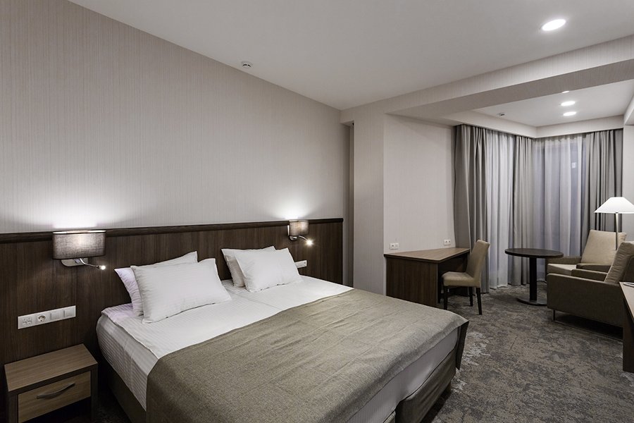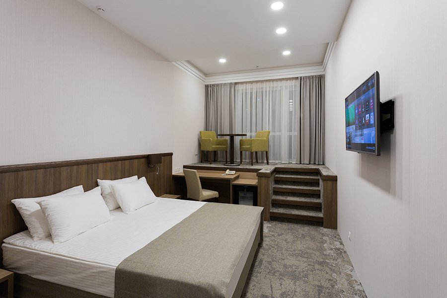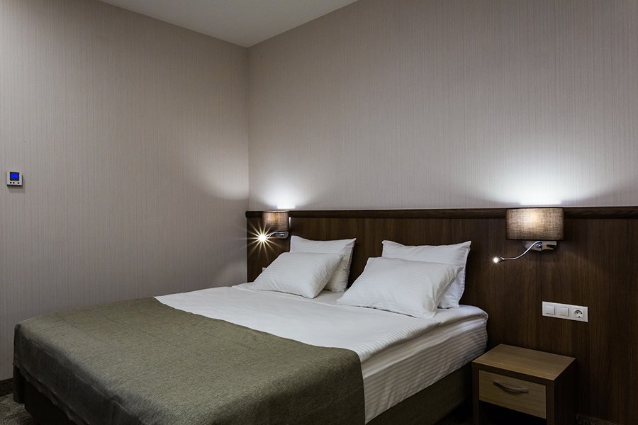 Площадь стандартного номера — 19.0 кв.м. В номере вы найдёте душ, телевизор, халат и тапочки. Оснащение зависит от выбранной категории номера.