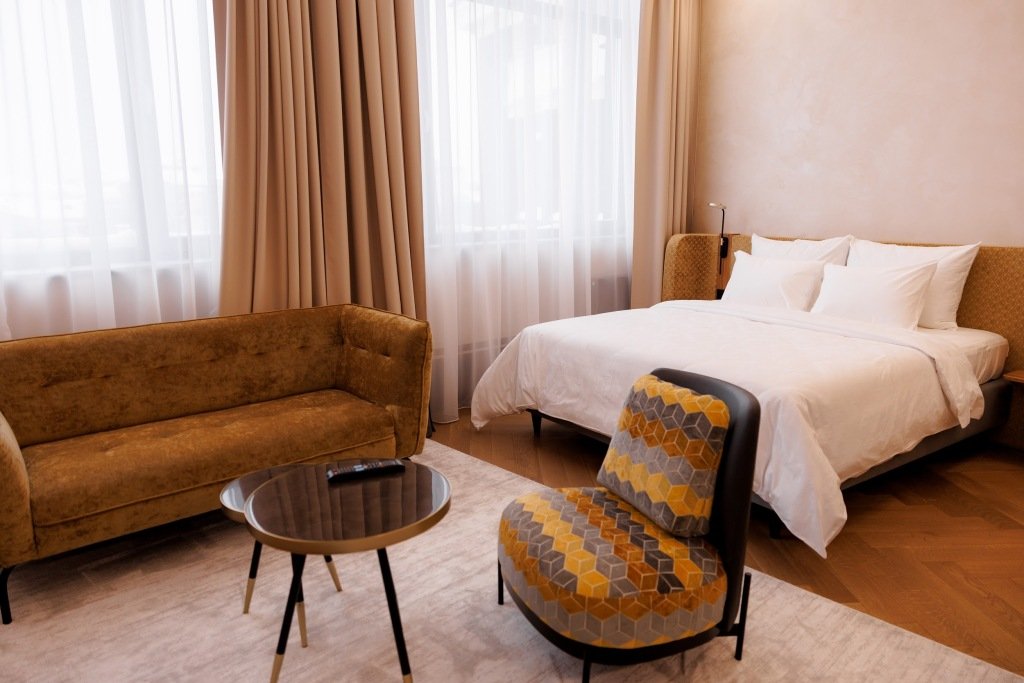 Путешествие с семьейИсторическое здание и современный сервис.Отель высокого уровня обслуживания. Сервис отличный. Мы жили в двухкомнатном номере с красивым балконом. В номере для нас приготовили блюдо со сливами, абрикосами и черешней. Чисто, удобно. Сама улица довольно шумная, но это уже не к отелю вопросы. Окна закрываются плотно, работает климат-контроль, но можно и открыть окно, на одном из них у нас была сетка.