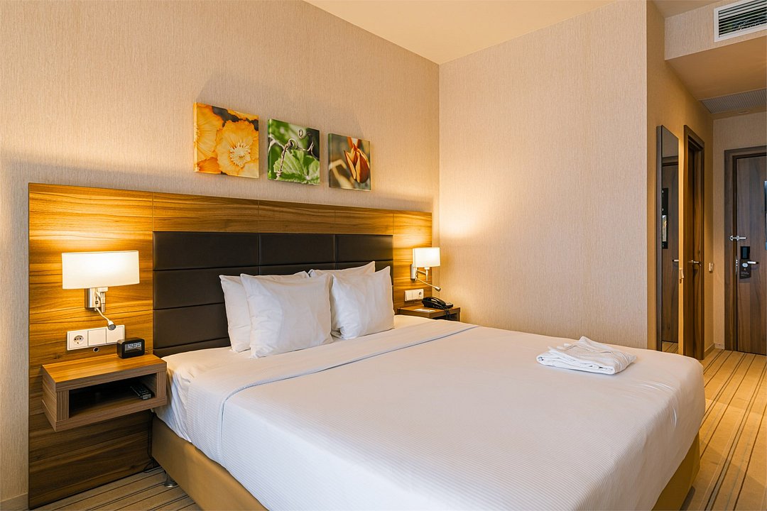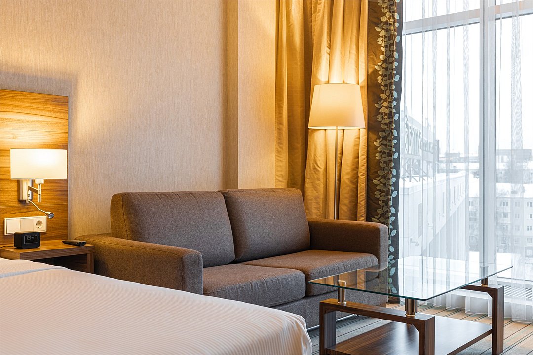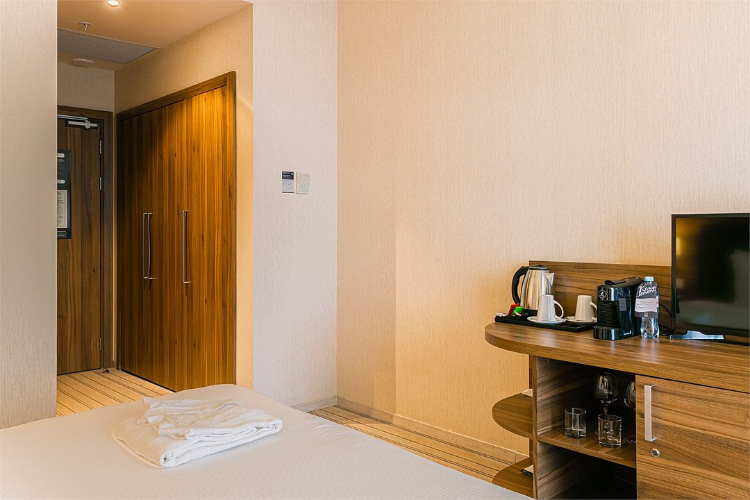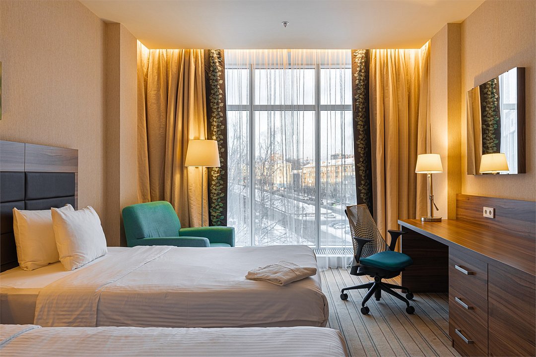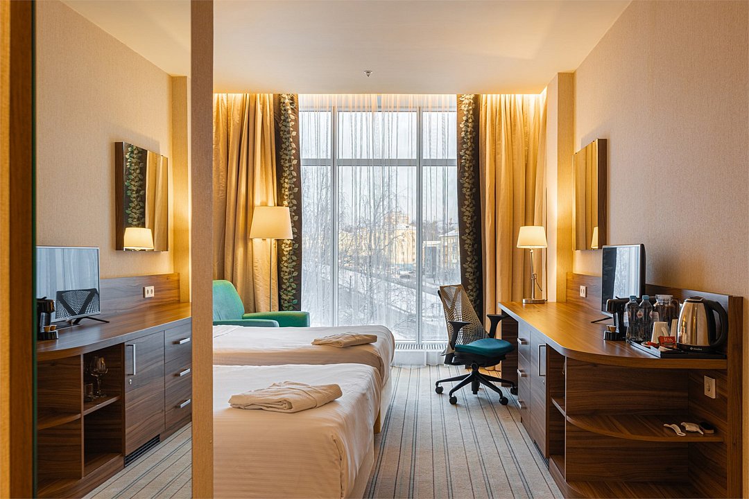 Прекрасный двухместный номер комфорт-класса (1-ая категория) с 2 кроватями и панорамным видом на город, который специально создан для отдыха в компании друга или коллеги. В этом стильном номере площадью 27 кв.м. есть всё для комфортного отдыха: две односпальные кровати Suite Dreams® by Serta для крепкого сна; стол с эргономичным стулом для продуктивной работы; ЖК-телевизор диагональю 32 дюйма с включённым доступом к беспроводному Интернету для приятного времяпрепровождения. Также номер оснащён мини-баром, кофемашиной, набором посуды, регулируемым кондиционером, мини-косметикой, халатами, тапочками, чайными и кофейными принадлежностями, графином для наполнения водой из кулера, бутилированной водой и утюгом/гладильной доской. При необходимости мы сможем предложить вам смежные номера, которые соединяются друг с другом общей дверью, что обеспечит семьям с детьми более комфортное и удобное проживание. Кроме того, у наших гостей есть возможность воспользоваться бесплатным посещением бассейна в 5 минутах ходьбы от здания отеля.Услуги и удобства