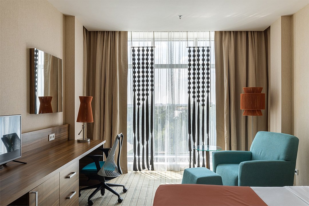 кабельное телевидение, Wi-Fi, телефон, кондиционер, настольные лампы, фен, будильник, электронные замки, кофемашина, утюг, ванная комната, душевая кабина, халаты, банные полотенца, тапочки, косметические средства, двуспальная кровать, гладильная доска, шкаф для одежды, письменный стол, зеркало, письменные принадлежности, чайный набор, набор посуды, обслуживание номеров, сейф, чайник, косметическое зеркало, питьевая вода, ковровое покрытие, вид на город, кулер на этаже, кресло, меню подушек, вид на парк, раскладной диван, телевизор с плоским экраном, гостиничная парфюмерия, вид на озеро, фанкойл, набор для приготовления чая и кофе, туалетные принадлежности премиум-класса, вешалки-плечики, бутилированная вода, мини-бар (платно), можно с питомцами, игрушки, лежанка, миска, пакетик для выгула, пеленкаВ гостиничном номере