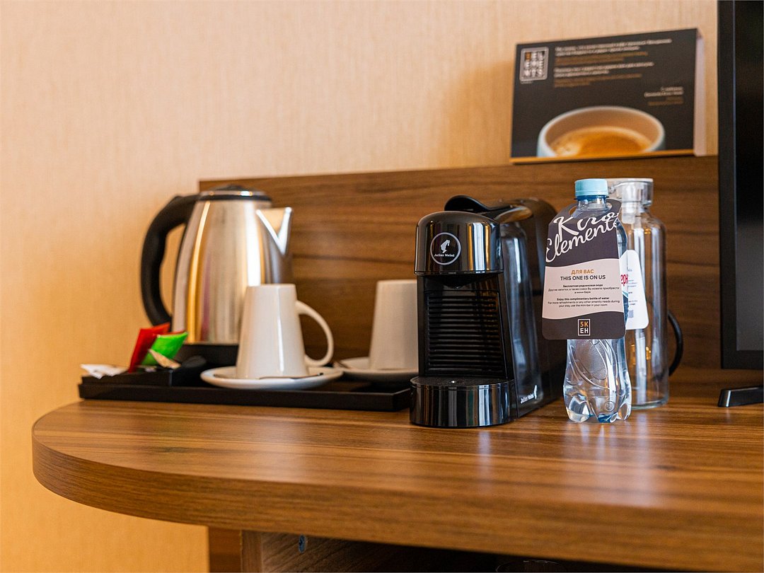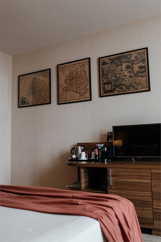 Добро пожаловать в Вятский номер отеля Elements Kirov Hotel 5*! Мы рады приветствовать вас в сердце нашего прекрасного города, где каждая деталь пропитана духом Вятского края. Предлагаем окунуться в атмосферу нашего региона через вкусы и ароматы Вятки. Позвольте порадовать вас Вятским пармезаном - гордостью наших сыроделов, душистым медом, свежей мятой и знаменитым на весь мир Вятским квасом. В номере мы разместили книги о Кировской области и Вятском крае, а также сувенир - Дымковскую барыню - уникальный народный промысел, пришедший к нам из глубины веков. Картины Вятской губернии XVIII-XX веков перенесут вас в прошлое и создадут незабываемую атмосферу. Надеемся, что эти традиционные атрибуты принесут вам радость и помогут лучше узнать наш замечательный край. Пусть время, проведённое здесь, будет наполнено теплом, комфортом и незабываемыми впечатлениями.Услуги и удобства