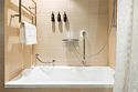 кабельное телевидение, Wi-Fi, телефон, кондиционер, настольные лампы, фен, электронные замки, кофемашина, утюг, ванная комната, душевая кабина, ванна, халаты, банные полотенца, тапочки, косметические средства, кровать «King size», гладильная доска, журнальный столик, письменный стол, письменные принадлежности, чайный набор, обслуживание номеров, сейф, чайник, питьевая вода, гостиная зона, ковровое покрытие, кулер на этаже, кресло, меню подушек, туалетные средства, вид на парк, раскладной диван, телевизор с плоским экраном, гостиничная парфюмерия, вид на озеро, бутилированная вода, мини-бар (платно), можно с питомцами, игрушки, лежанка, миска, пакетик для выгула, пеленкаВ гостиничном номере