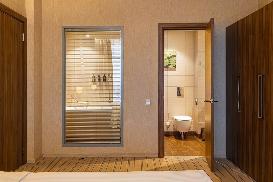 два телевизора, кабельное телевидение, Wi-Fi, телефон, холодильник, кондиционер, настольные лампы, фен, будильник, электронные замки, кофемашина, микроволновая печь, утюг, ванная комната, душевая кабина, ванна, биде, халаты, банные полотенца, тапочки, гигиенические средства, косметические средства, кровать «King size», гладильная доска, диван, шкаф для одежды, журнальный столик, письменный стол, барная стойка, зеркало, письменные принадлежности, чайный набор, набор посуды, обслуживание номеров, сейф, чайник, мягкая мебель, питьевая вода, обеденная зона, гостиная зона, ковровое покрытие, кулер на этаже, кресло, стаканы, туалетные средства, вид на парк, телевизор с плоским экраном, мини-кухня, гостиничная парфюмерия, вид на озеро, вешалки-плечики, мини-бар (платно), можно с питомцами, игрушки, лежанка, миска, пакетик для выгула, пеленкаВ гостиничном номере