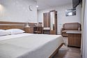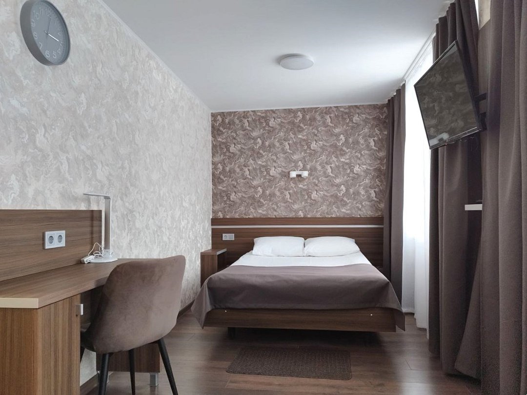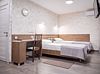 Номер отличается современным дизайном, выполненным в теплых тонах. Уютная обстановка с удобной кроватью и стильной мебелью создает атмосферу домашнего комфорта. Просторная ванная комната оборудована всем необходимым для вашего удобства. Оснащение номера: Двуспальная кровать Письменный стол и стул Настенные часы Телевизор Кондиционер Вешалки для одежды и зеркало Душевая кабина Полотенца и основные туалетные принадлежностиУслуги и удобства