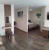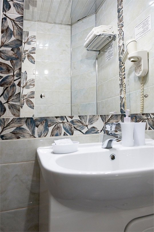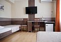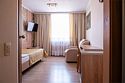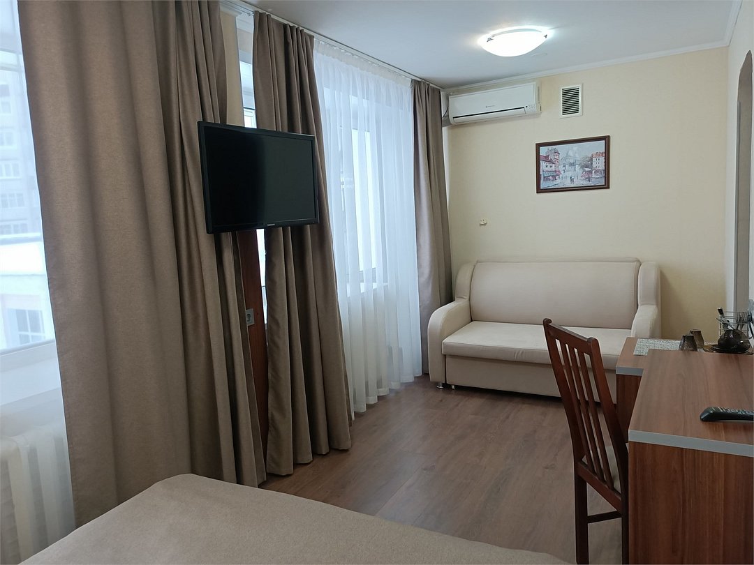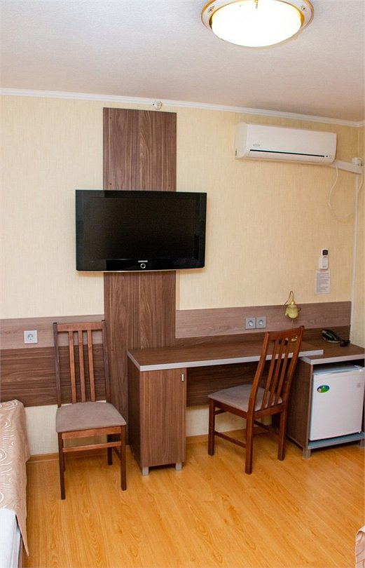 Уютный номер оформлен в теплых тонах, создающих атмосферу комфорта и расслабления. В интерьере использованы функциональные элементы мебели. Просторная ванная комната отделана светлой плиткой, обеспечивающей свежесть и чистоту. Оснащение номера: Кондиционер Телевизор с плоским экраном Рабочий стол Стулья Холодильник Телефон Санузел с раковиной и зеркалом Полотенца ФенУслуги и удобства