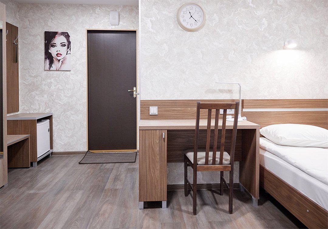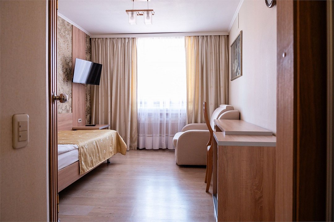 Уютный номер лаконичным дизайном. Светлые тона создают атмосферу комфорта и уюта. Аккуратный интерьер способствует отдыху после долгого дня. Оснащение номера: Односпальная кровать Телевизор с плоским экраном Письменный стол и стул Удобное кресло Ванная комната с феном Полотенца и туалетные принадлежностиУслуги и удобства