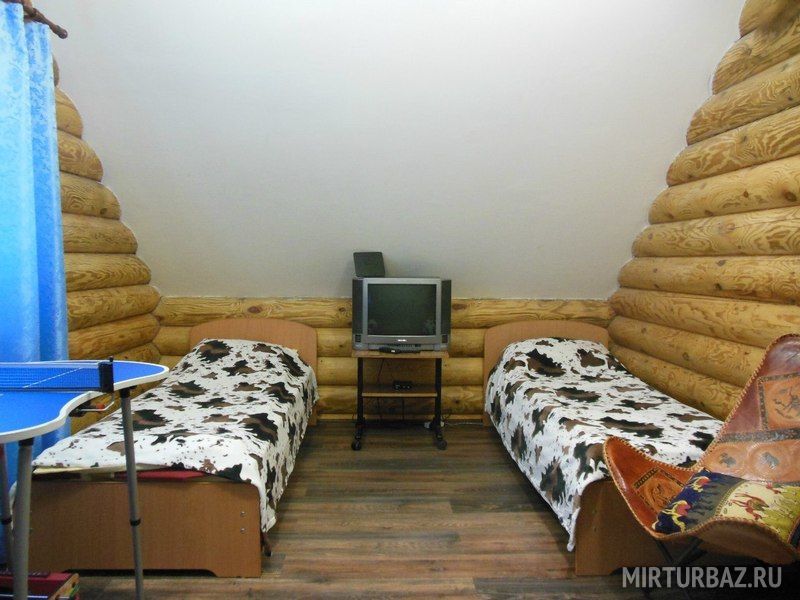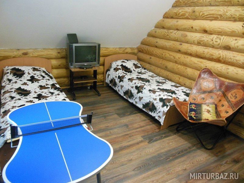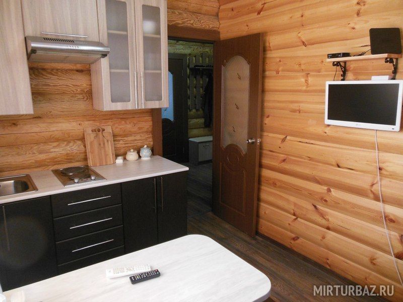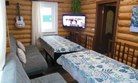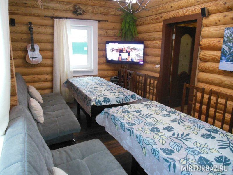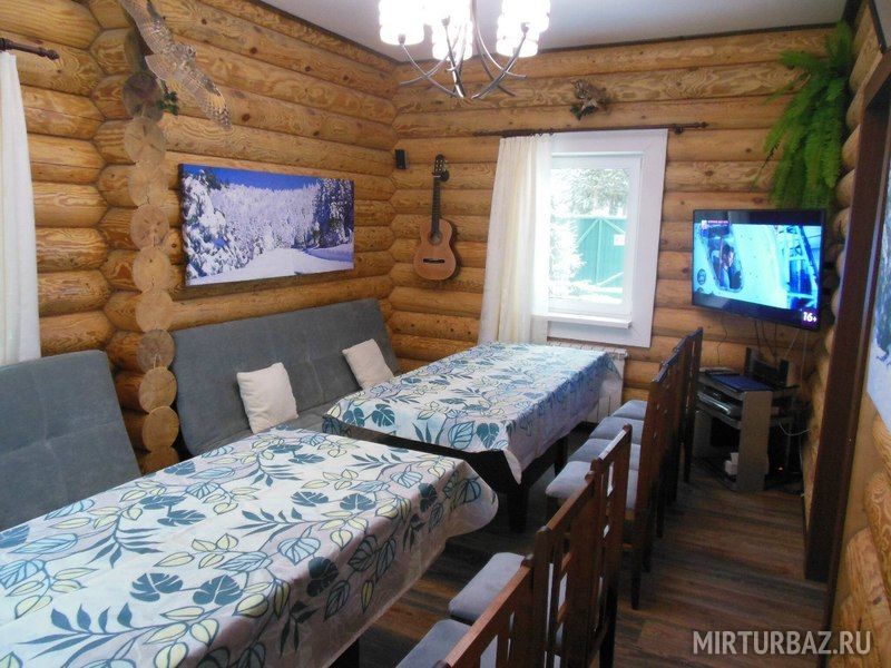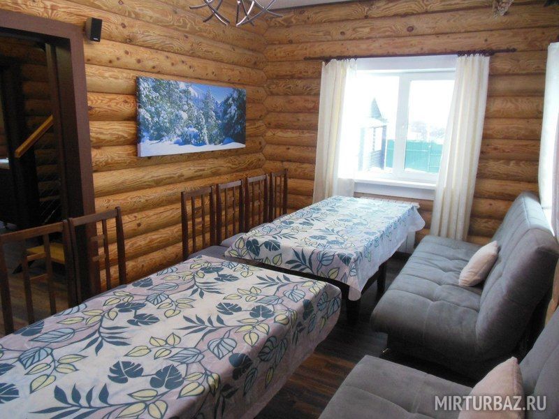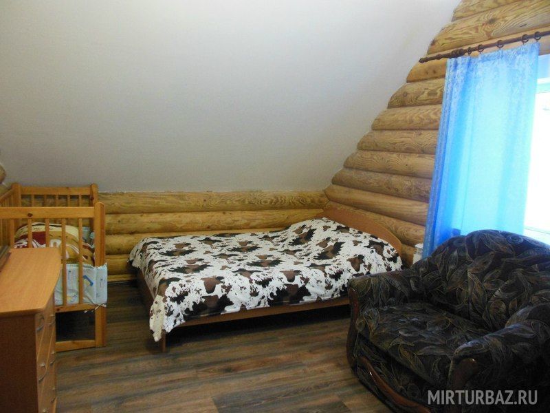 В вашем распоряжении бревенчатый дом 2 этажа. На первом этаже гостиная с телевизором, караоке, гитарой. Ближе к ночи она становиться спальней на 4 спальных места; уютная кухня с холодильником, варочной панелью, микроволновой печью, посудой; ванная комната. На втором этаже расположены 3 спальные комнаты на 11 спальных мест, кресла из кожи буйволов с острова Шри-Ланки.