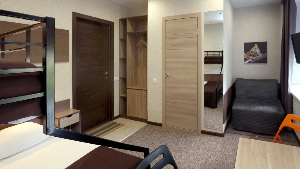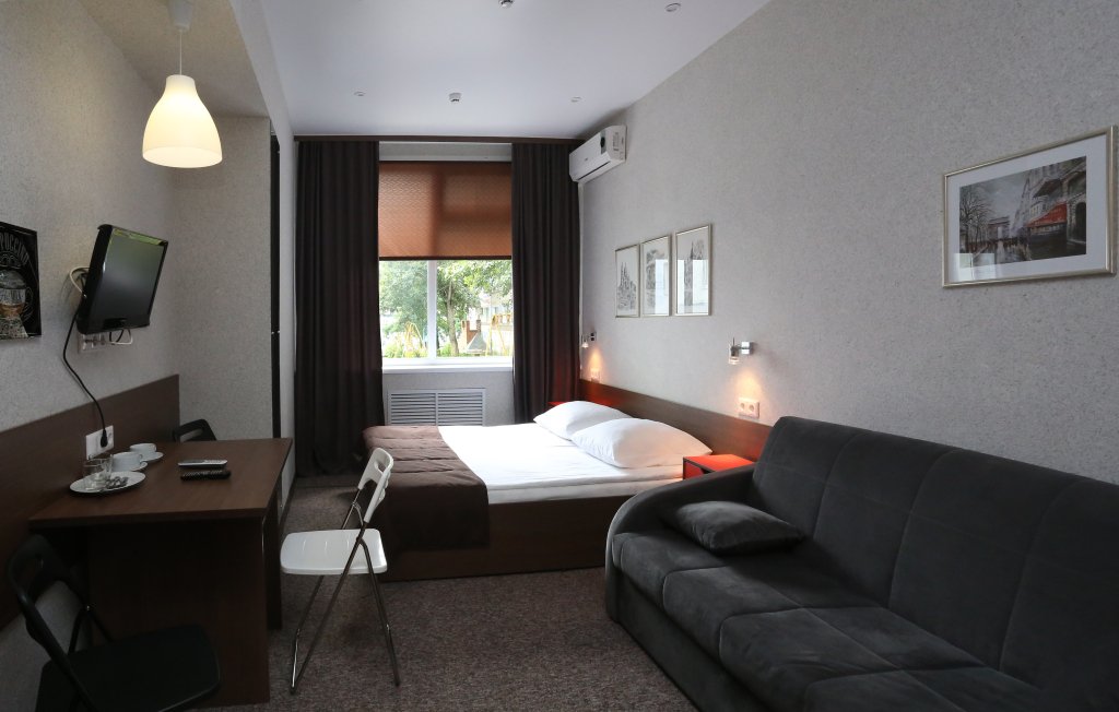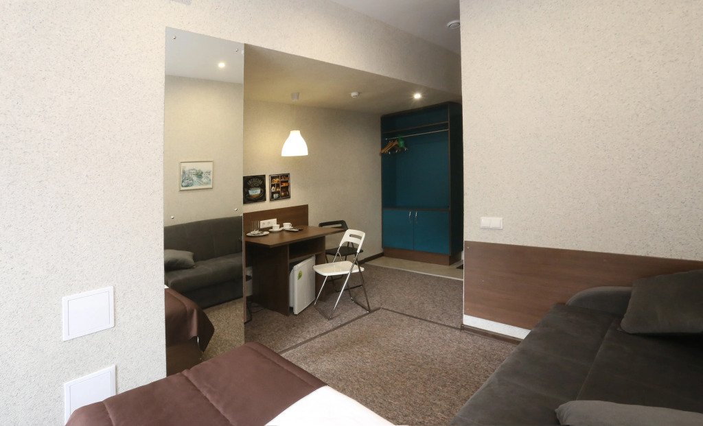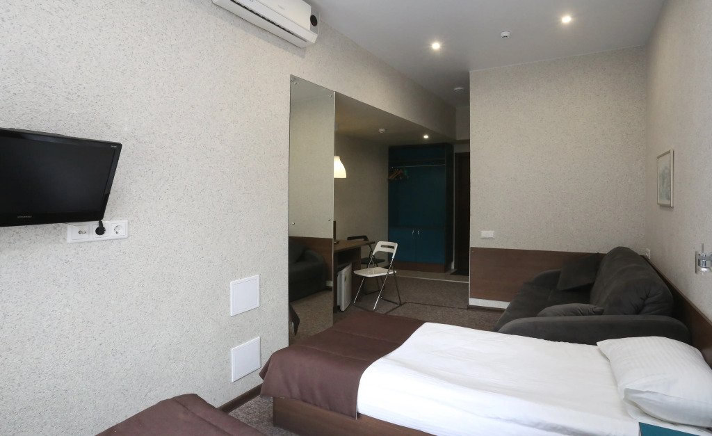 В номере вы найдёте будильник, душ, телевизор, халат и тапочки. Оснащение зависит от выбранной категории номера.