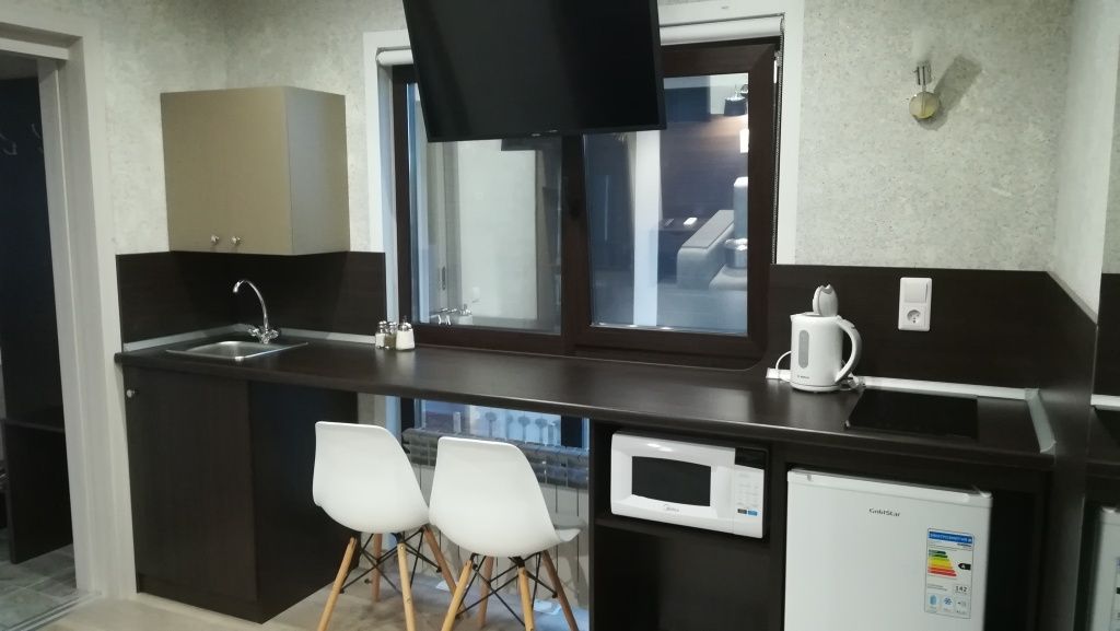 Путешествие с семьейНомер с собственной парковкойОтличный вариант для тех, кто путешествует на машине. Мы приехали в Киров вечером, за ранее номер не бронировали. Сняли апартаменты с парковкой. В номере две комнаты, большая двухспальная кровать, во второй комнате диван кровать и кухня. Для размещения семьи с двумя детьми вполне достаточно. Во дворе перед входом в номер два парковочных места, дают брелок от автоматических ворот для въезда. В номере чисто.