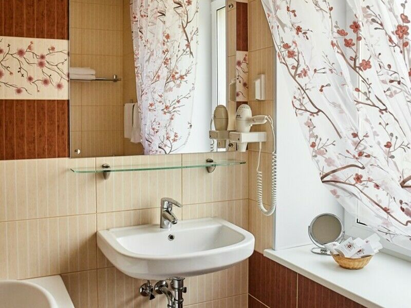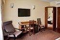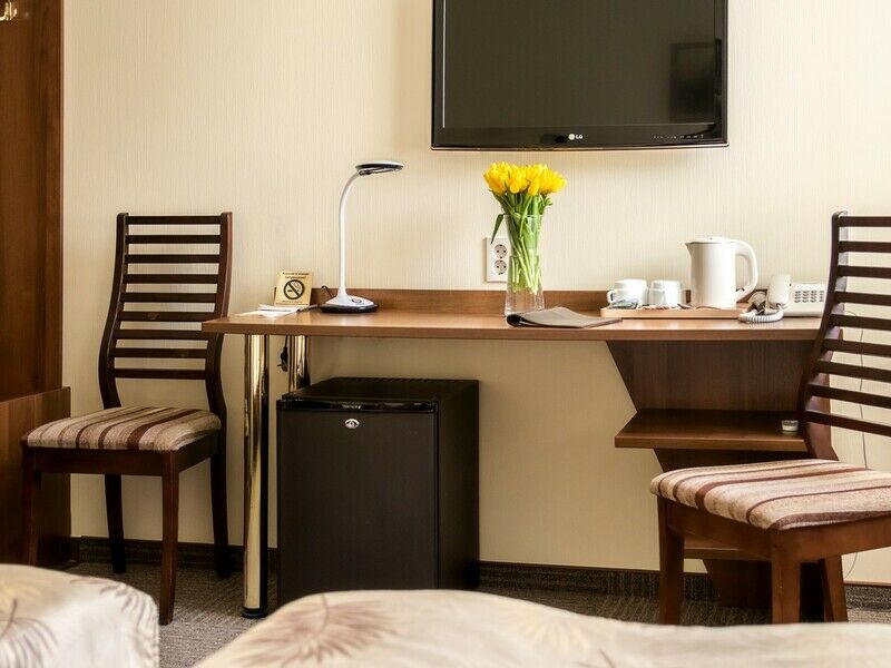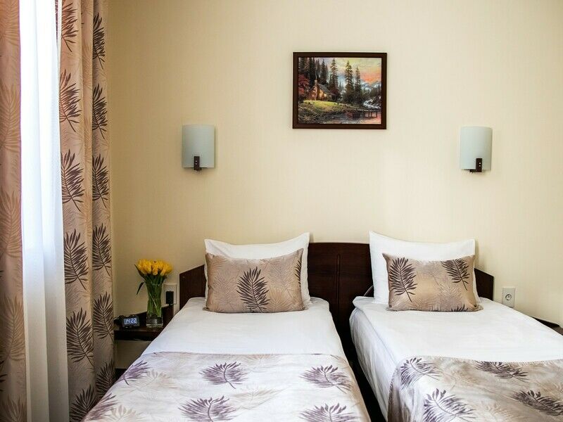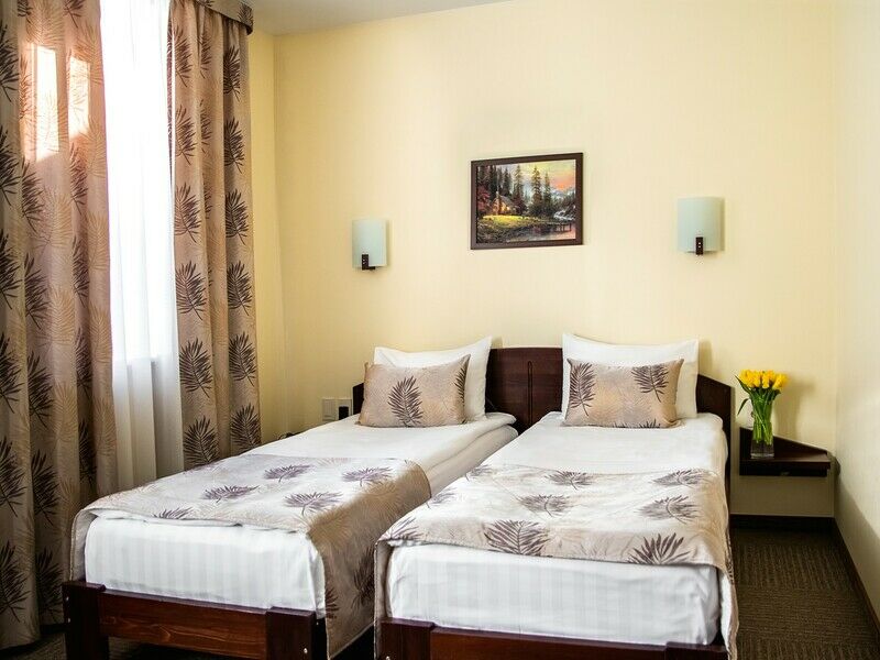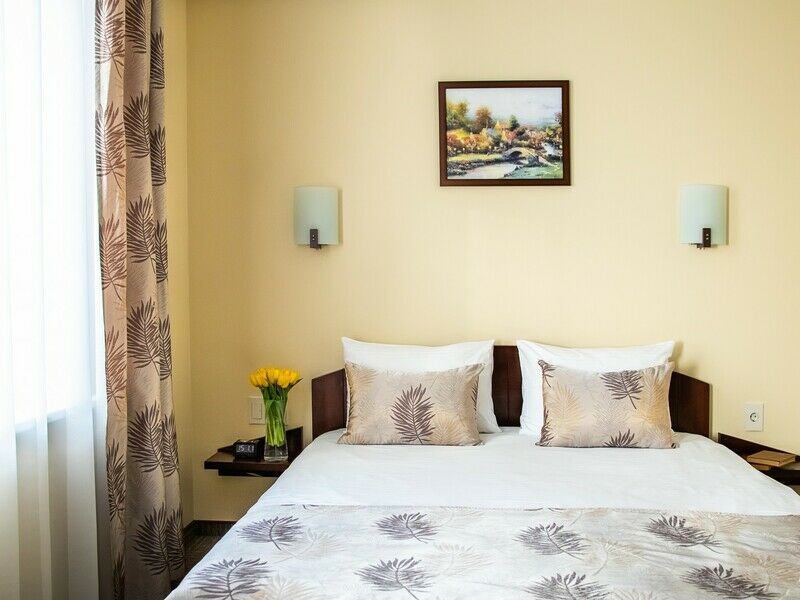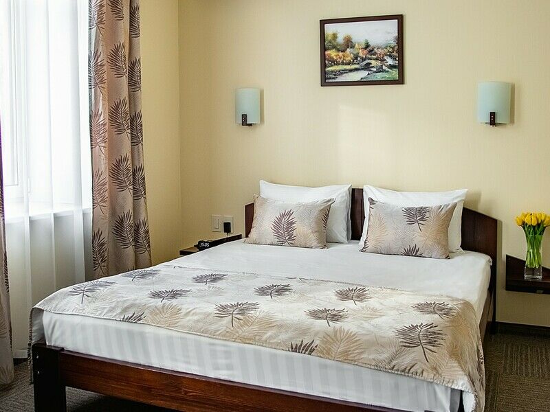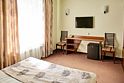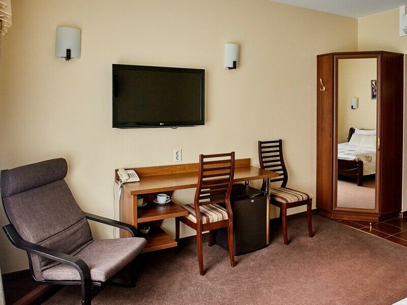 Трехэтажное здание отеля находится на закрытой охраняемой территории. Гостей ожидают двухместные номера категории Стандарт и Комфорт. В каждом есть собственная ванная комната, телевизор, электрочайник, в комнатах мансардного этажа — кондиционер. Все номера хорошо меблированы и оформлены в приятной пастельной гамме.